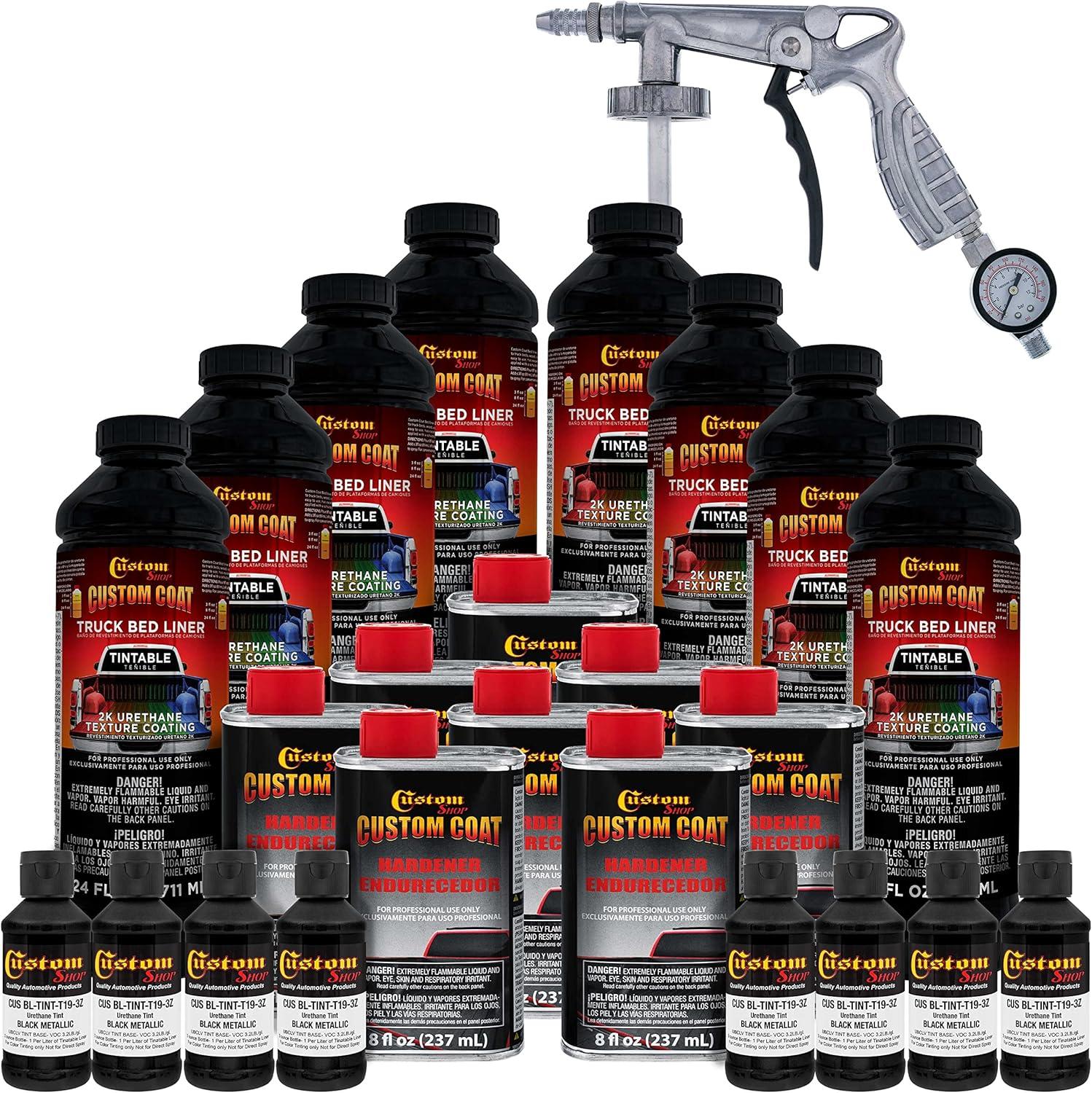 Custom Coat Black 1 Gallon Urethane Roll-On, Brush-On or Spray-On Truck Bed Liner Kit with Roller and Brush Applicator Kit – 3 to 1 Mix Ratio – Durable Textured Car Auto Protective Coating(Black Metallic)