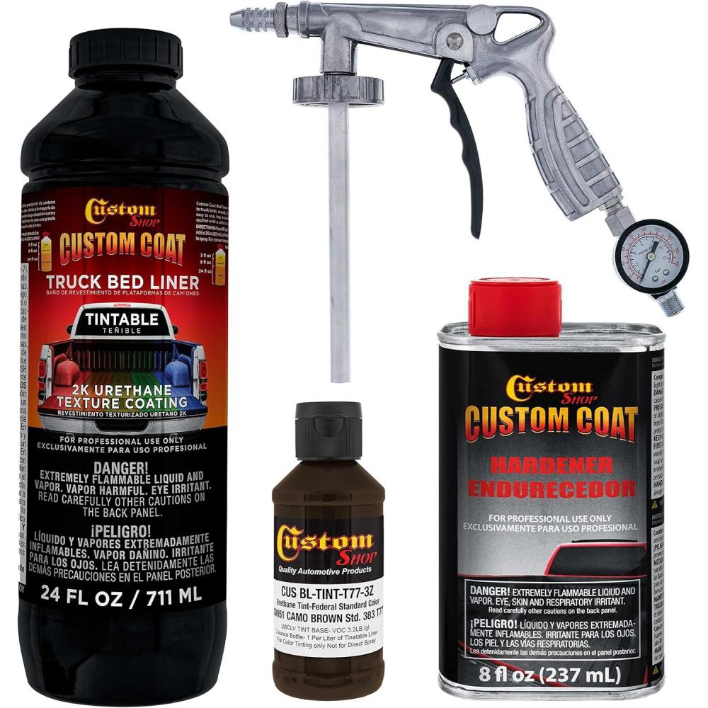 Custom Coat Federal Standard Color # 30051 Camo Brown T77 Urethane Spray-On Truck Bed Liner, 1 Quart Kit with Spray Gun and Regulator - Durable Textured Protective Coating - Easy Mix Car Auto