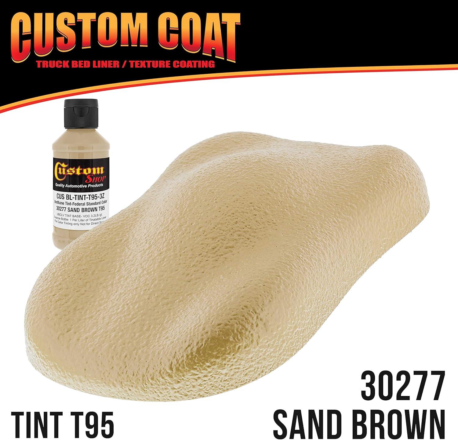 Professional Custom Coat Roll-On, Brush-On or Spray-On Truck Bed Liner 1 Quart Kit. Custom Tintable Color Kit Includes: 1 – 21 fl. oz. Cans of Tintable Truck Bed Liner Base, 1 – 8 fl. oz. Cans Custom Coat Standard Hardener and 1 – 3 fl. oz. Bottles of Custom Shop Basecoat Color Tint, and 1 Custom Coat 7 Piece Paint Roller Applicator Kit with 2 Rollers, Frame, 2 Brushes and Coating Tray with Liner. Estimated coverage is 110 to 130 square feet @ 10 mils wet film thickness.