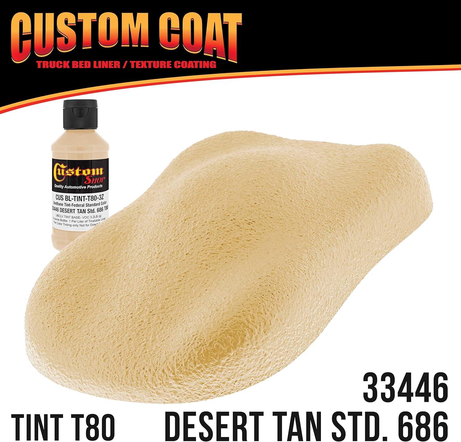 Custom Coat Federal Standard Color # 33446 Desert Tan T80 Urethane Roll-On, Brush-On or Spray-On Truck Bed Liner, 1 Quart Kit with Roller Applicator Kit – Textured Car Auto Protective Coating