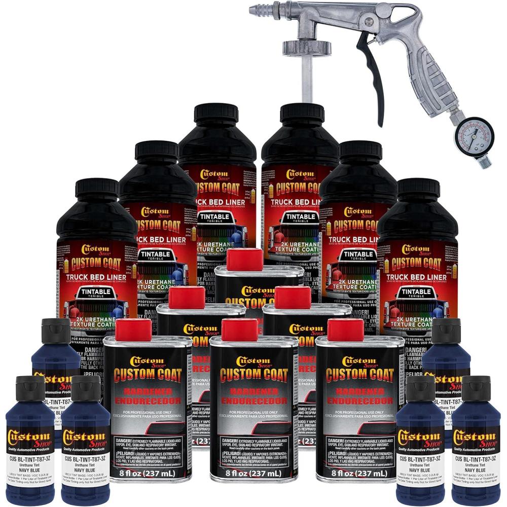 Custom Coat Federal Standard Color # 35048 Navy Blue Urethane Spray-On Truck Bed Liner, 1.5 Gallon Kit with Spray Gun and Regulator – Durable Textured Protective Coating – Car Auto