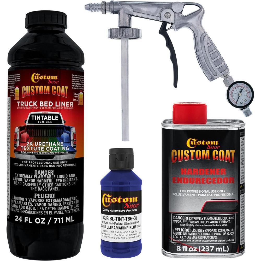 imageCustom Coat Federal Standard Color  35056 Ultramarine Blue T86 Urethane SprayOn Truck Bed Liner 1 Quart Kit with Spray Gun and Regulator  Durable Textured Protective Coating  Easy Mix Car Auto