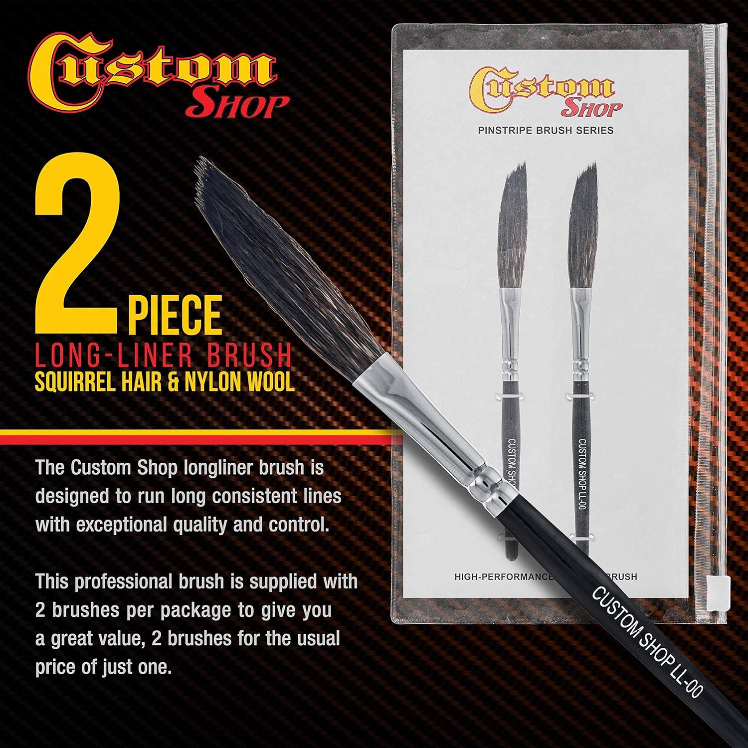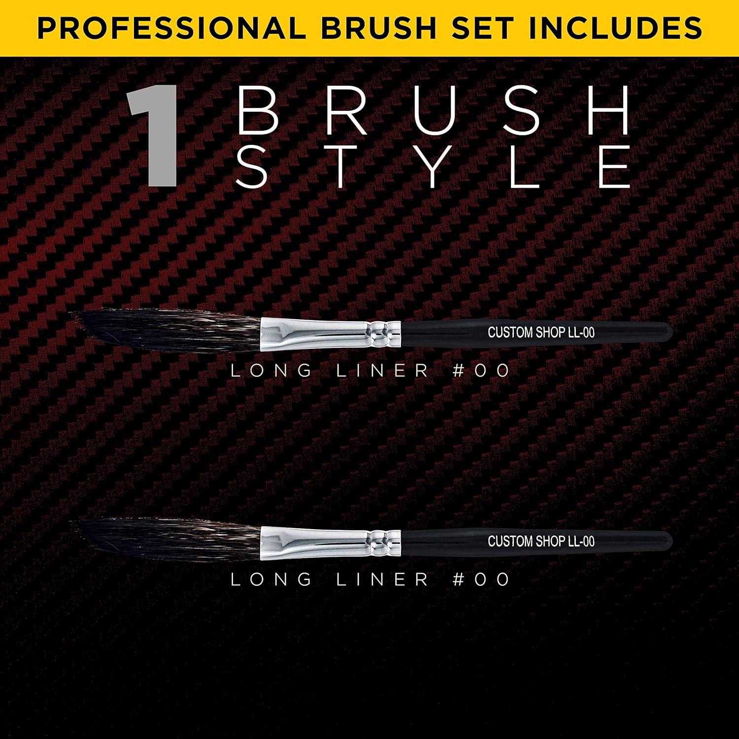 Custom Shop - #00 Size Long Liner Pinstriping Brush – Beginners and Experts, Enhanced Paint Loading, Full Belly Design, Long Handle, Premium Squirrel Hair & Nylon Wool 1-7/8" Length, Pack of 2(#00 Long Liner Brush)