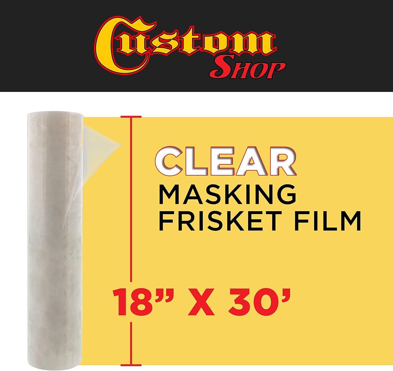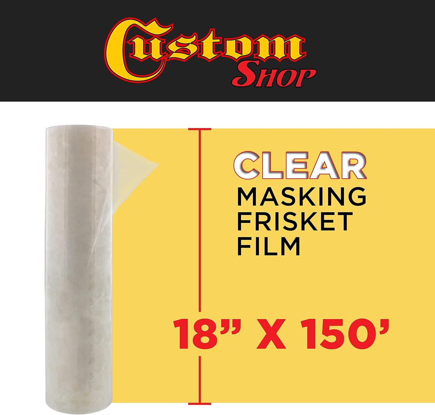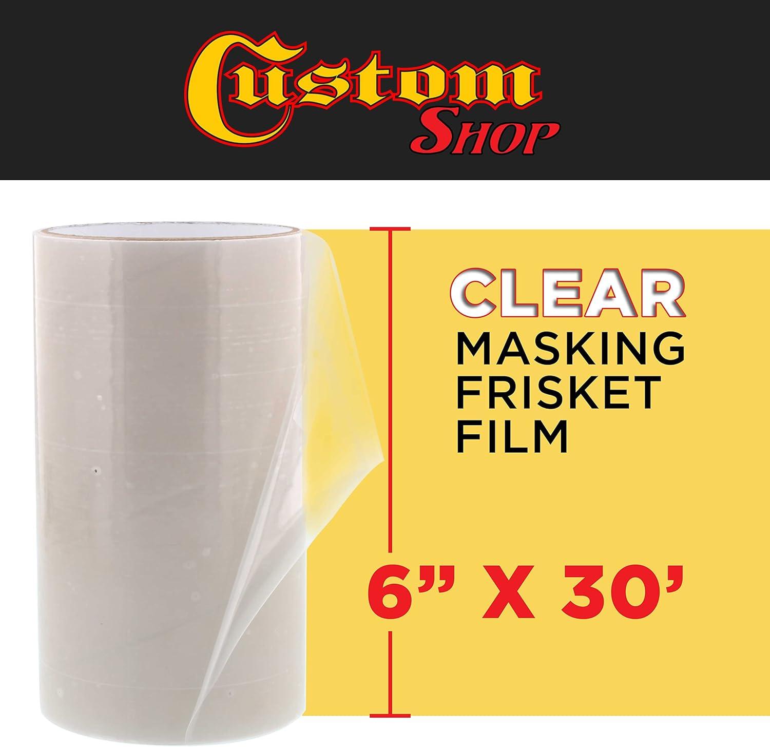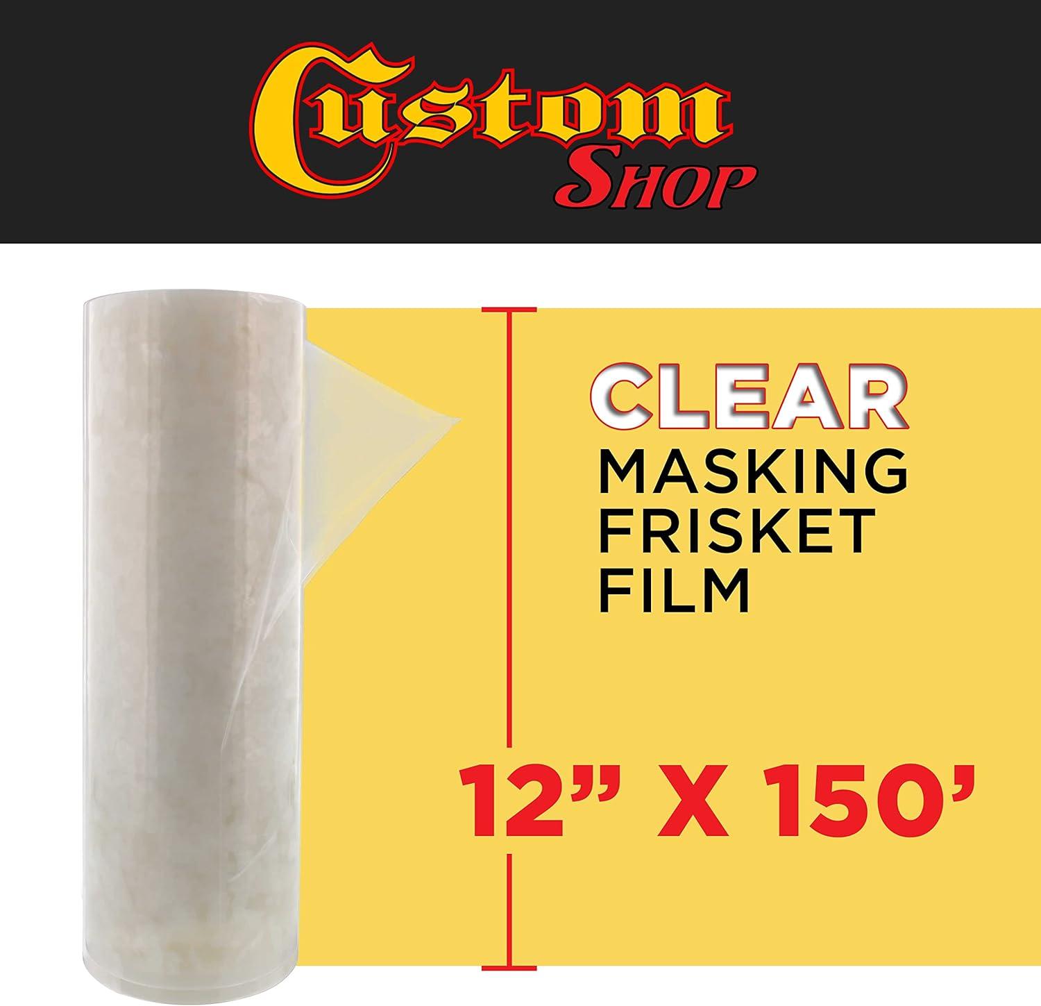 Custom Shop 12″ x 30' Roll of Self-Adhesive Semi-Transparent Masking Film/Frisket Tape. Medium-Tack. Use for tracing and cutting templates, making stencils and lettering, transfer tape, and as a secure masking tape.
