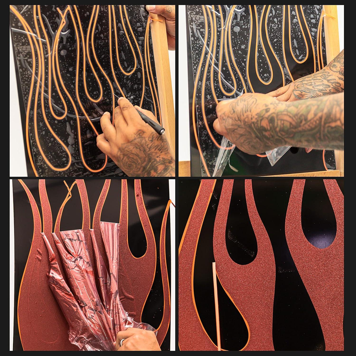 Ideal for custom painting applications, as it can be used when airbrushing to create automotive and motorcycle graphics like flame painting. Cut and lift film pieces to expose your design areas to be painted.