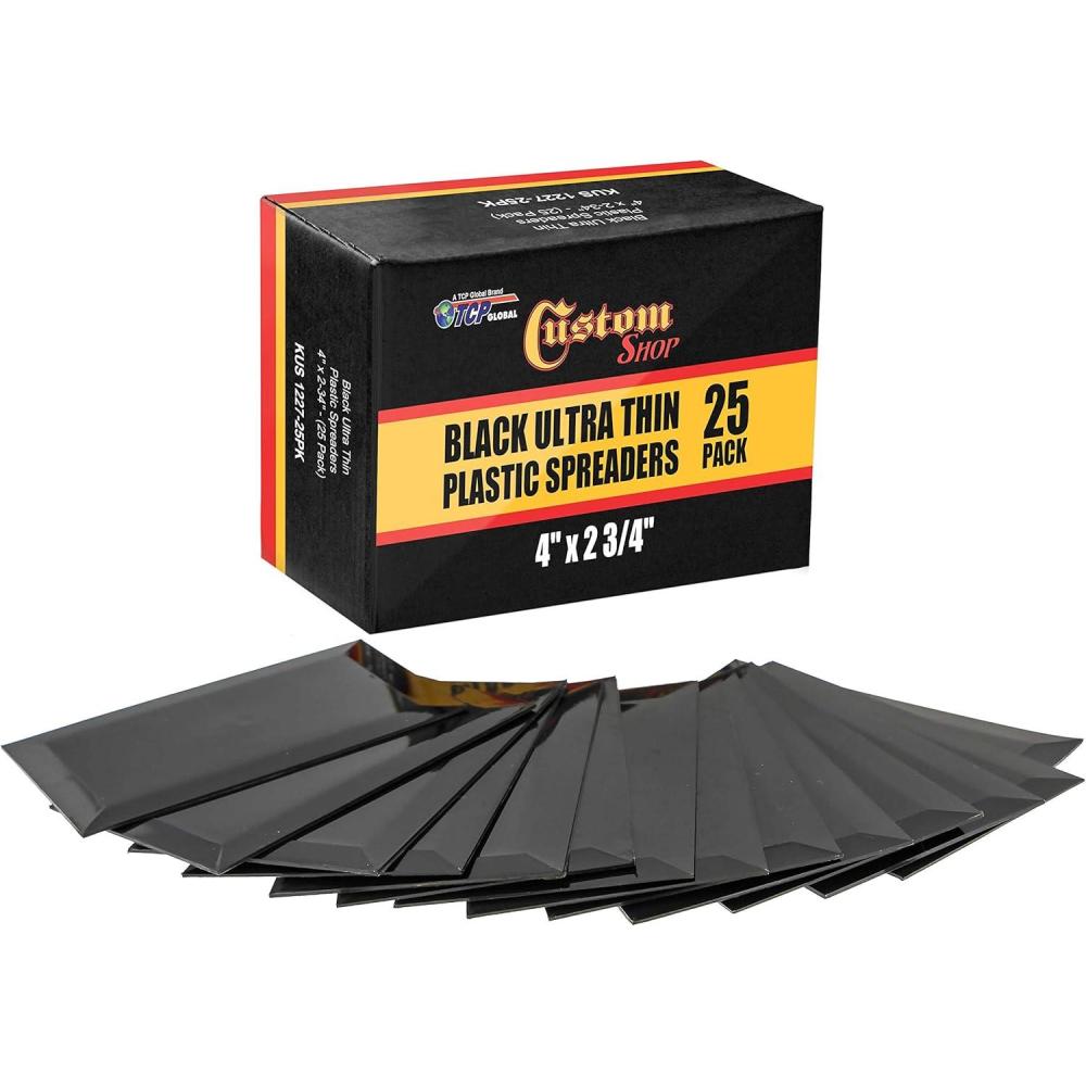 Custom Shop 4 x 2-3/4 Inch Plastic Body Filler Spreader Tools (25 Pack) for Automotive Body Fillers, Putties, Glazes, Epoxy Resin, Caulk, Glues - Double Sided Plastic Spreader Tool