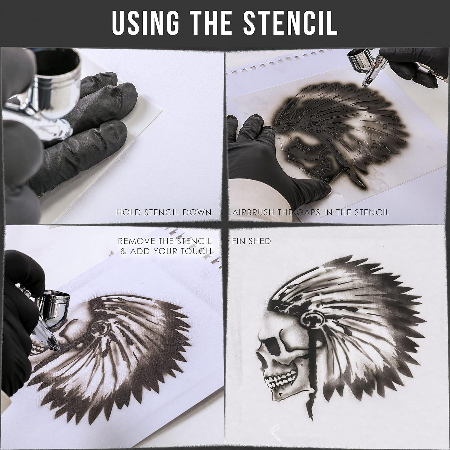 Custom Shop Airbrush Skeleton Skull Indian Chief Stencil Set (Skull Design #11 in 3 Scale Sizes) – Laser Cut Reusable Templates – Auto, Motorcycle Graphic Art(Skull Set #11)