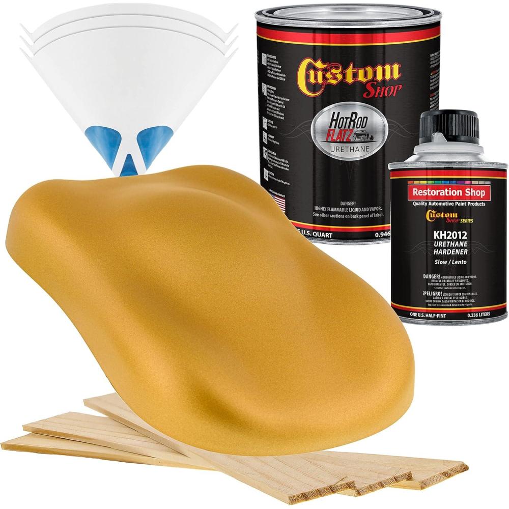 Custom Shop – Autumn Gold Metallic – Hot Rod Flatz Flat Matte Satin Urethane Auto Paint – Complete Quart Paint Kit – Professional Low Sheen Automotive, Car Truck Coating, 4:1 Mix Ratio