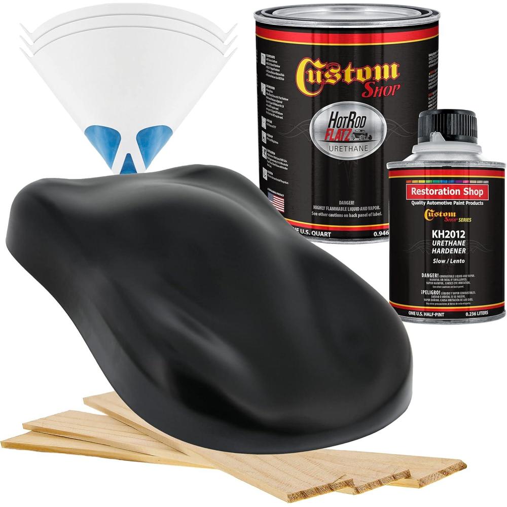 imageCustom Shop  Boulevard Black  Hot Rod Flatz Flat Matte Satin Urethane Auto Paint  Complete Quart Paint Kit  Professional Low Sheen Automotive Car Truck Coating 41 Mix Ratio