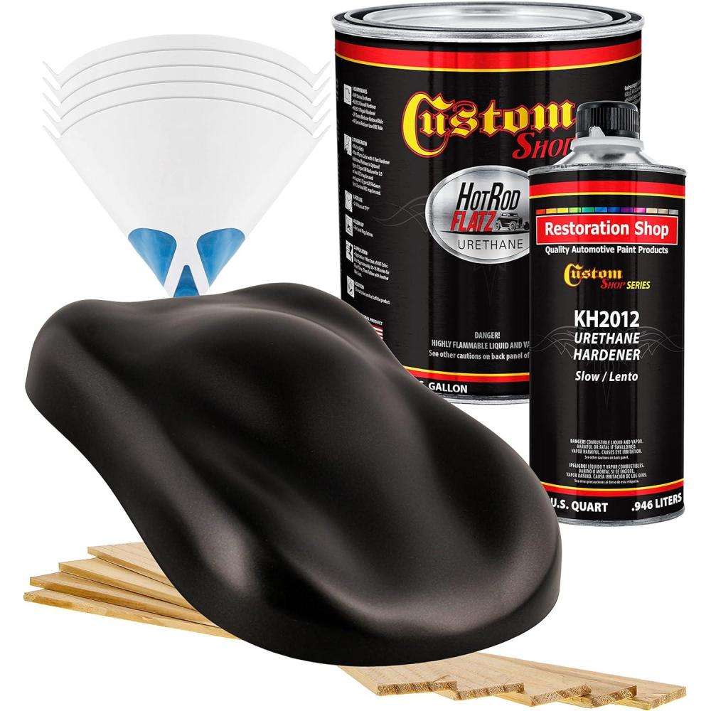 Custom Shop - Black Metallic - Hot Rod Flatz Flat Matte Satin Urethane Auto Paint - Complete Gallon Paint Kit - Professional Low Sheen Automotive, Car Truck Coating, 4:1 Mix Ratio