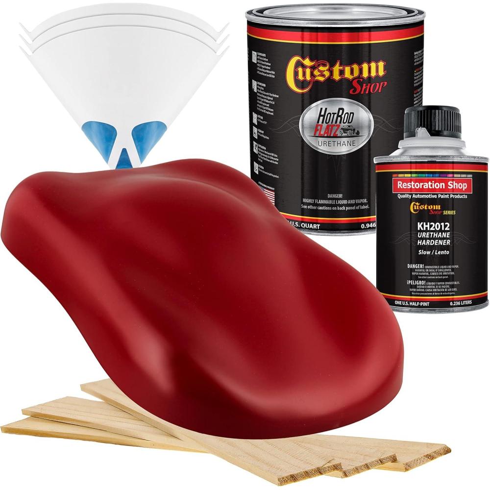 imageCustom Shop  Blood Red  Hot Rod Flatz Flat Matte Satin Urethane Auto Paint  Complete Quart Paint Kit  Professional Low Sheen Automotive Car Truck Coating 41 Mix Ratio