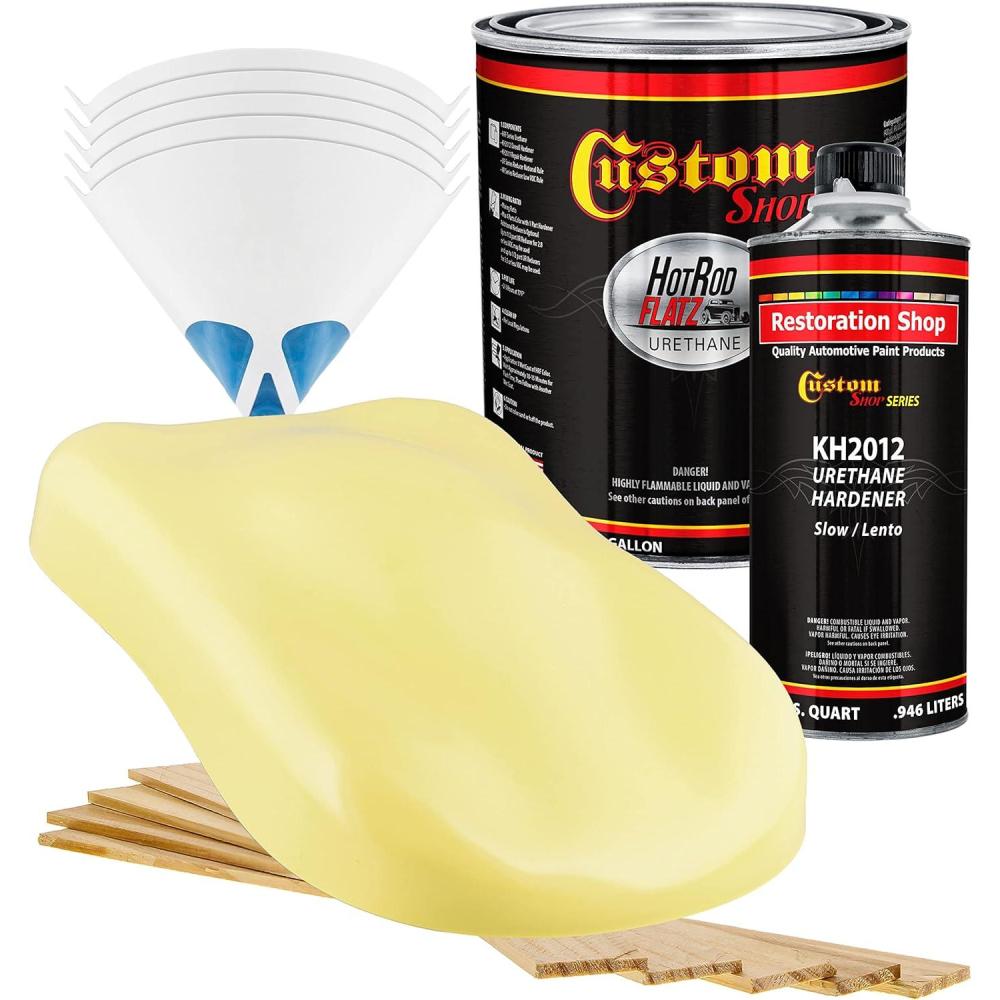 imageCustom Shop  Cream Yellow  Hot Rod Flatz Flat Matte Satin Urethane Auto Paint  Complete Gallon Paint Kit  Professional Low Sheen Automotive Car Truck Coating 41 Mix Ratio