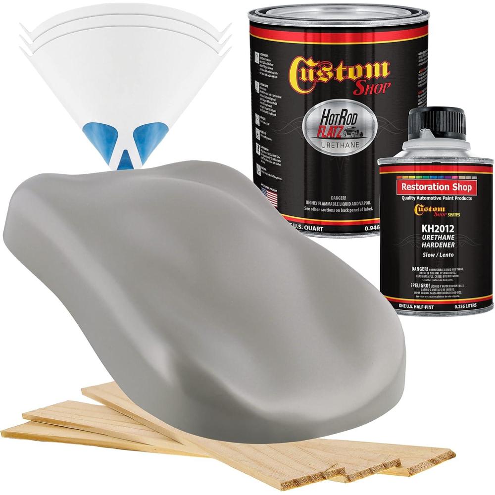 imageCustom Shop  Dove Gray  Hot Rod Flatz Flat Matte Satin Urethane Auto Paint  Complete Quart Paint Kit  Professional Low Sheen Automotive Car Truck Coating 41 Mix Ratio