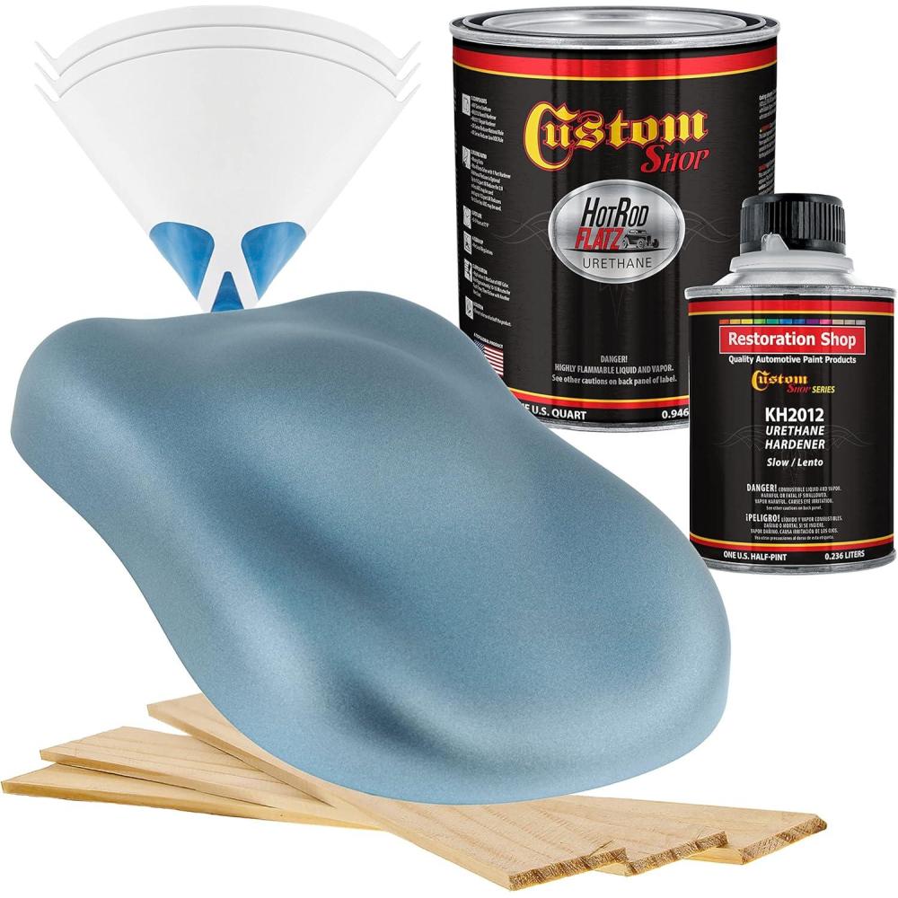 Custom Shop - Glacier Blue Metallic - Hot Rod Flatz Flat Matte Satin Urethane Auto Paint - Complete Quart Paint Kit - Professional Low Sheen Automotive, Car Truck Coating, 4:1 Mix Ratio
