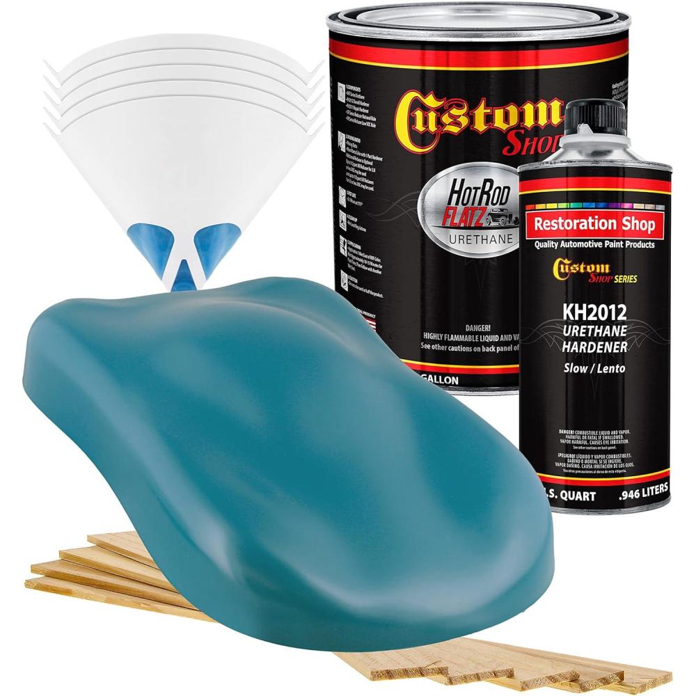 Custom Shop - Medium Blue - Hot Rod Flatz Flat Matte Satin Urethane Auto Paint - Complete Gallon Paint Kit - Professional Low Sheen Automotive, Car Truck Coating, 4:1 Mix Ratio