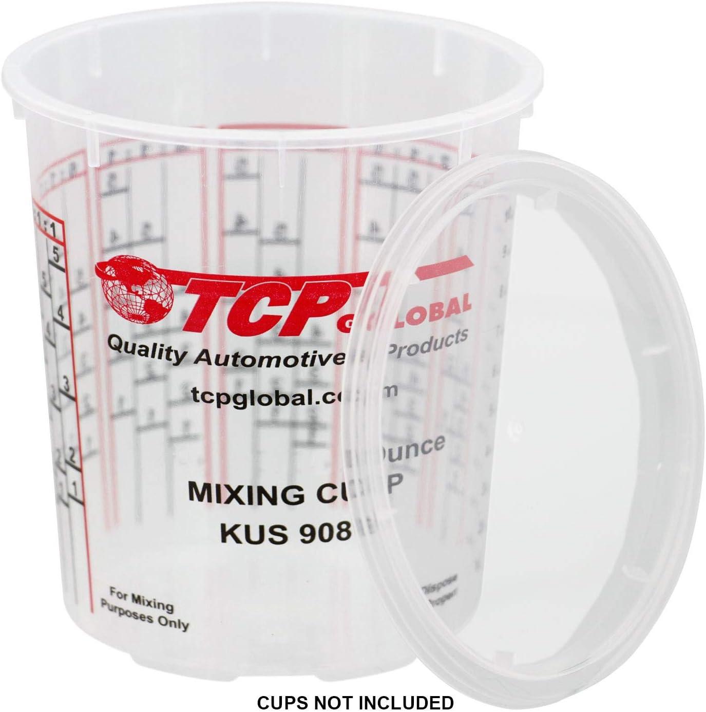 Precise Fit: Compatible with Custom Shop/TCP Global mixing cups; Transforms standard cups into tight paint cups with lids; Stops spills and leaks for automotive paint, epoxy resin, acrylic pouring paint.