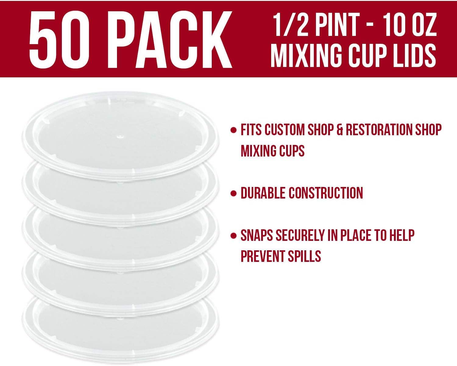 Custom Shop Paint Mixing Cup Lids Only (Box of 50) 1/2 Pint Size - Exclusively Fits Custom Shop/TCP Global Cups, 8 Ounce Size - Auto Paint Cup Lids for Acrylic Paints & Epoxy Resin Containers(Lids - Box of 50 Lids)