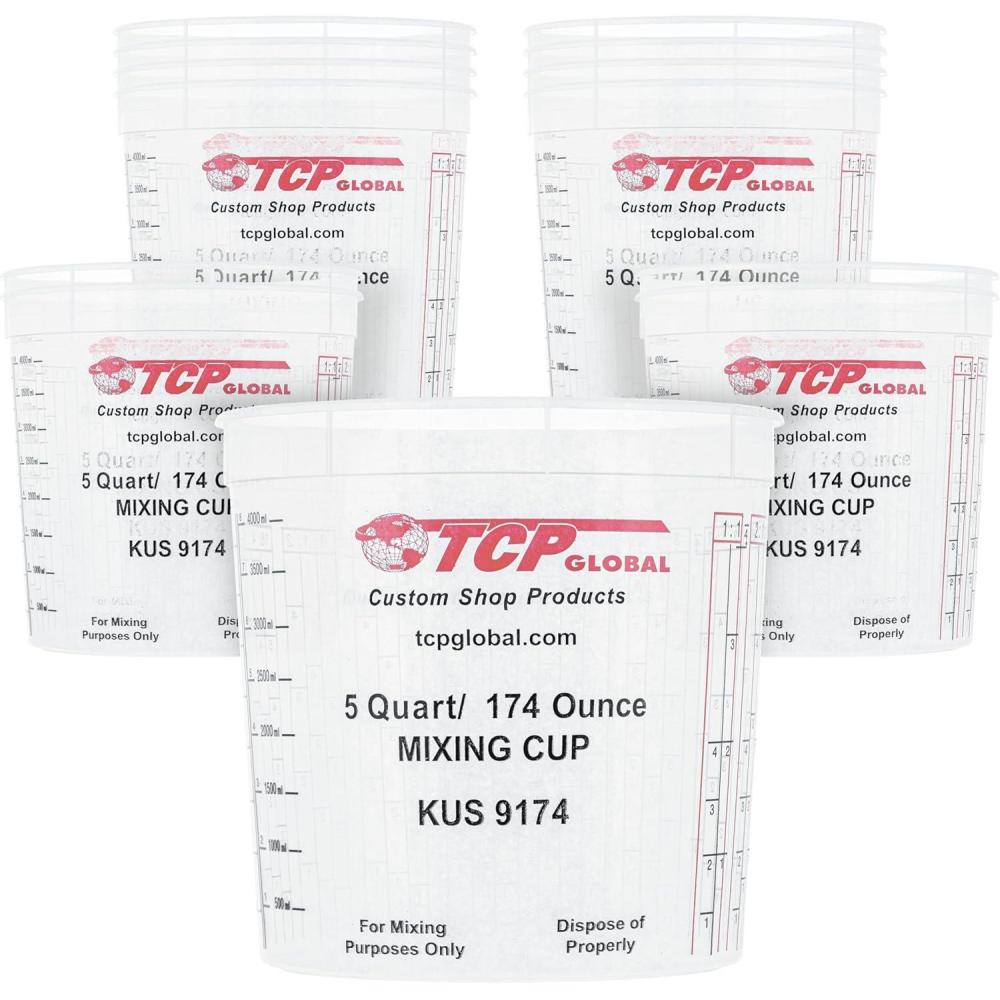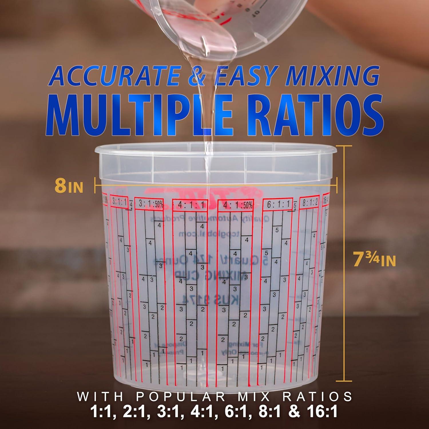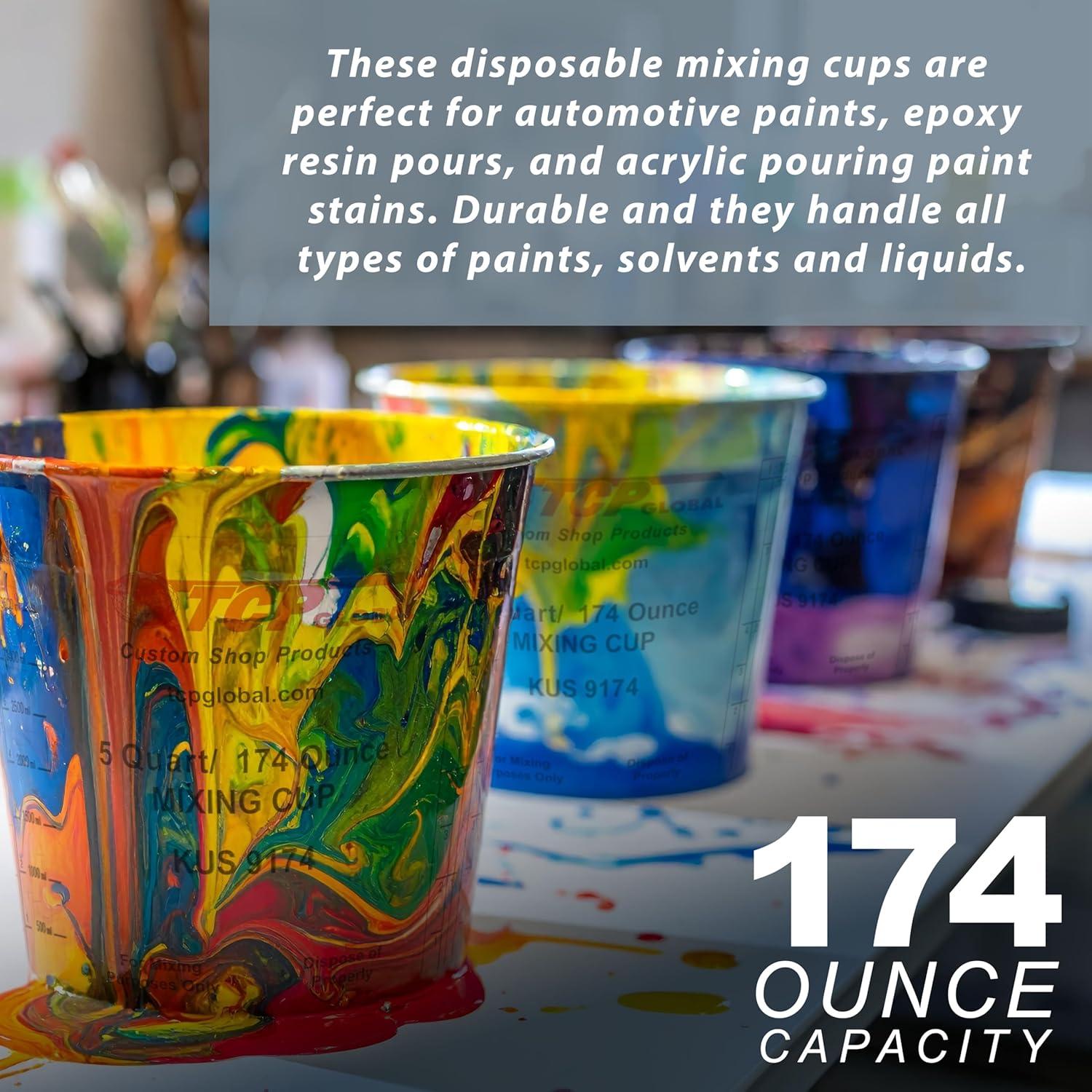 Custom Shop Paint Mixing Cups, 5-Quart (12 Pack) - Plastic Measuring Cups for Liquids, Automotive Painting, Epoxy Resin, Acrylic Arts, Crafts, Disposable or Reusable, Graduated, Mixing Ratios(12 Count (Pack of 1))