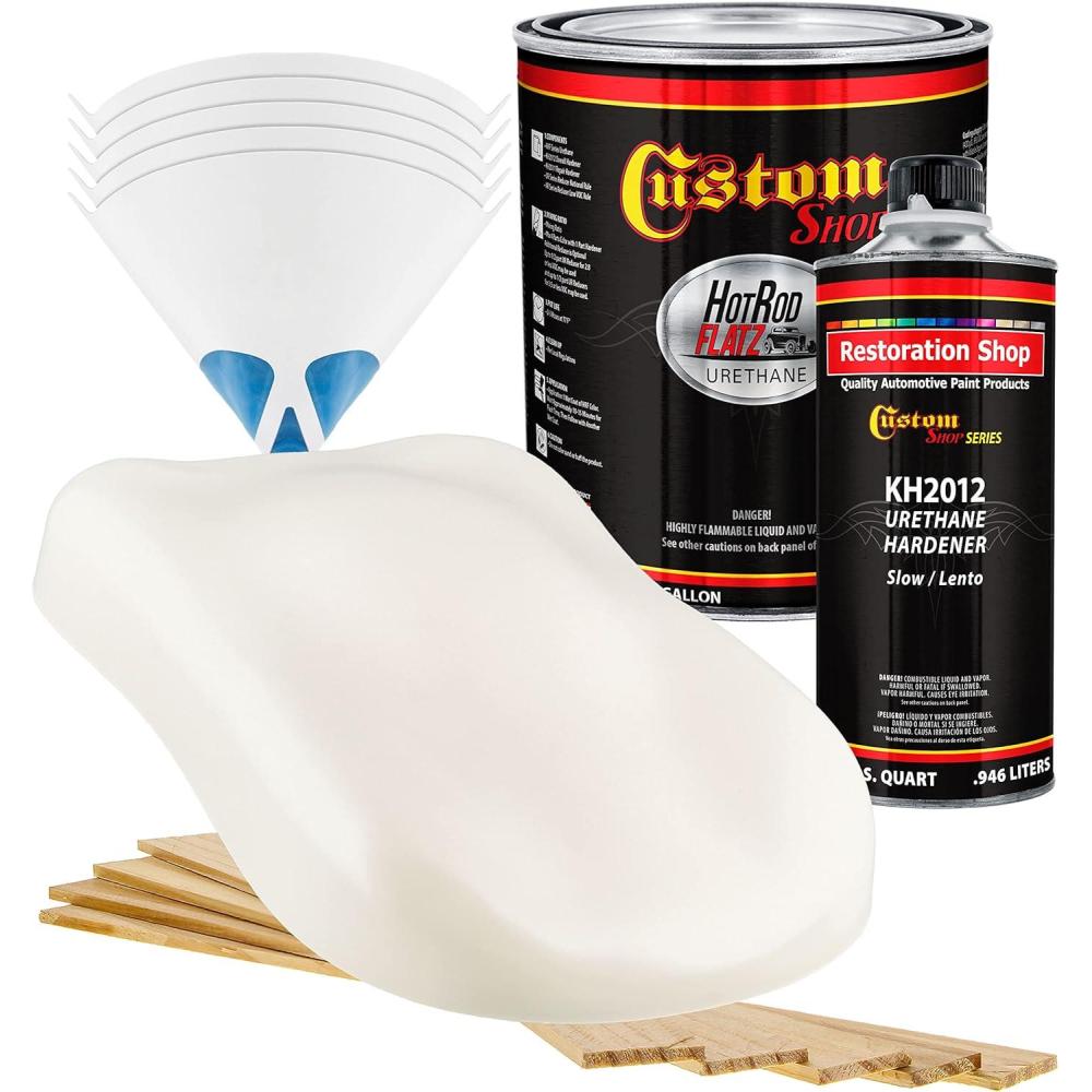 imageCustom Shop  Ermine White  Hot Rod Flatz Flat Matte Satin Urethane Auto Paint  Complete Quart Paint Kit  Professional Low Sheen Automotive Car Truck Coating 41 Mix Ratio