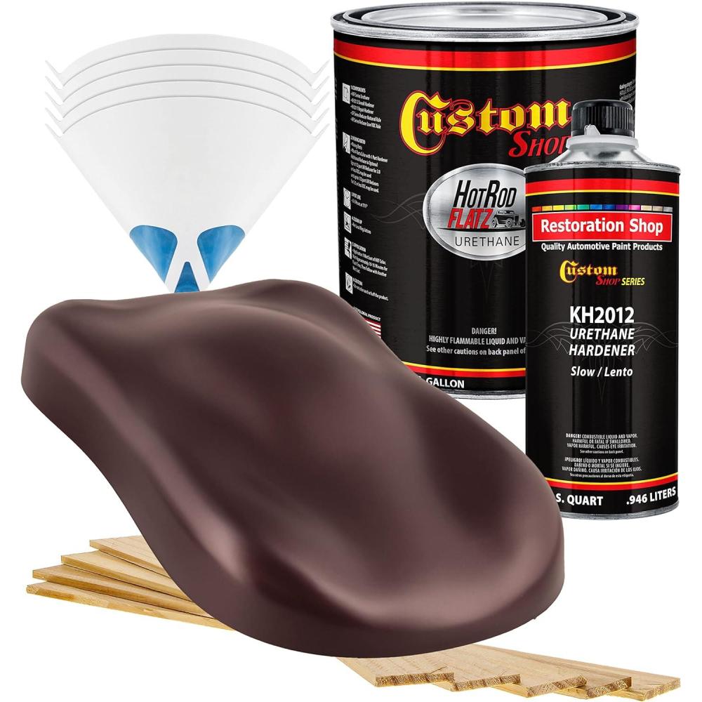 Paint Kit includes 1 Gallon of Hot Rod Flatz Single Stage Acrylic Urethane Paint Color, 1 Quart of Custom Shop Urethane Hardener (KH2012-QT), 5 Pack of 190 Micron Nylon Automotive Strainers, and a 5 Pack of Wood Paint Mixing Sticks.