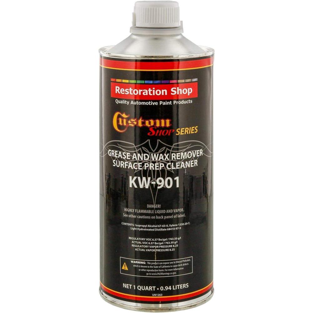 1 Quart Can of KW901 – Grease and Wax Remover Surface Prep Cleaner – Use before any bodywork or painting operation to assure a clean quality surface. Promotes maximum paint adhesion. Dries quickly with no residue