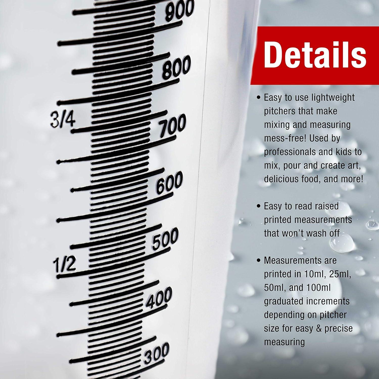 Easy to use lightweight pitchers that make mixing, measuring, and pouring mess-free! Used by professionals and kids to mix, pour and create art, delicious food, and more.